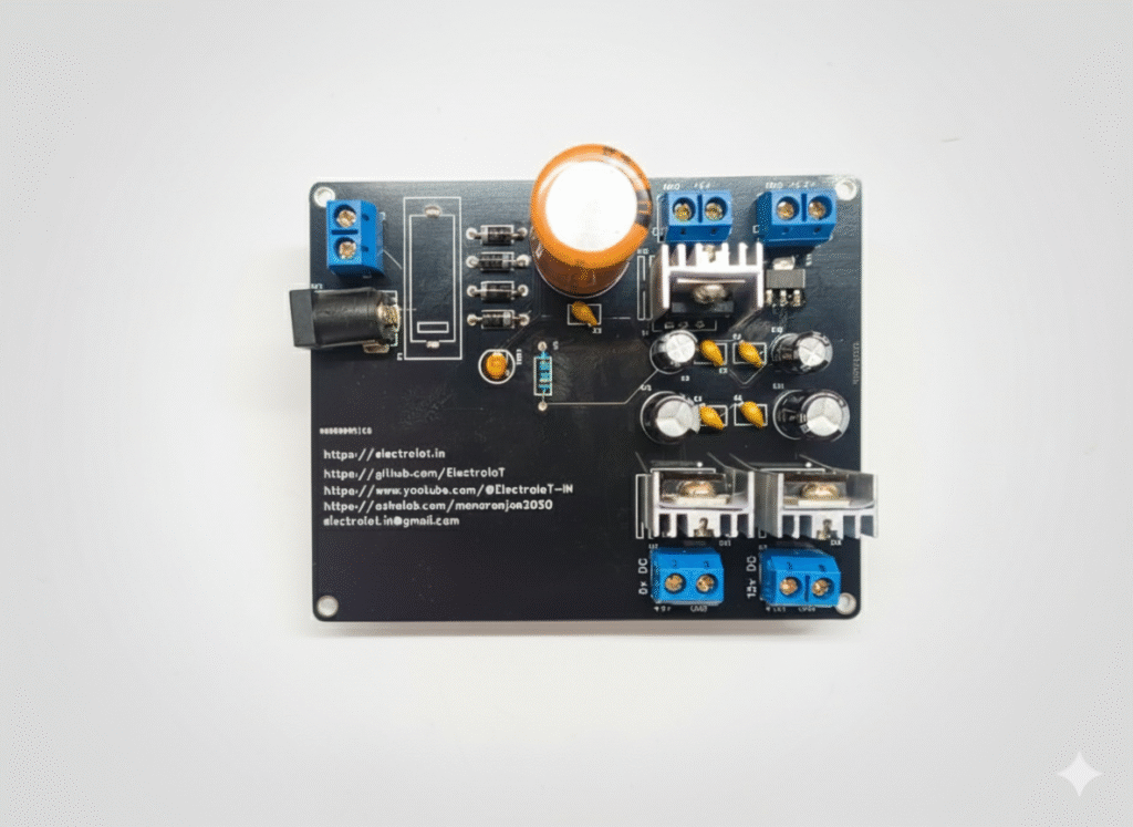 This project includes a PCB design with 4 different output voltages for powering various electronic components such as Arduino, sensors, and more. It’s perfect for anyone working with multiple 5V or 3.3V devices in a single setup.